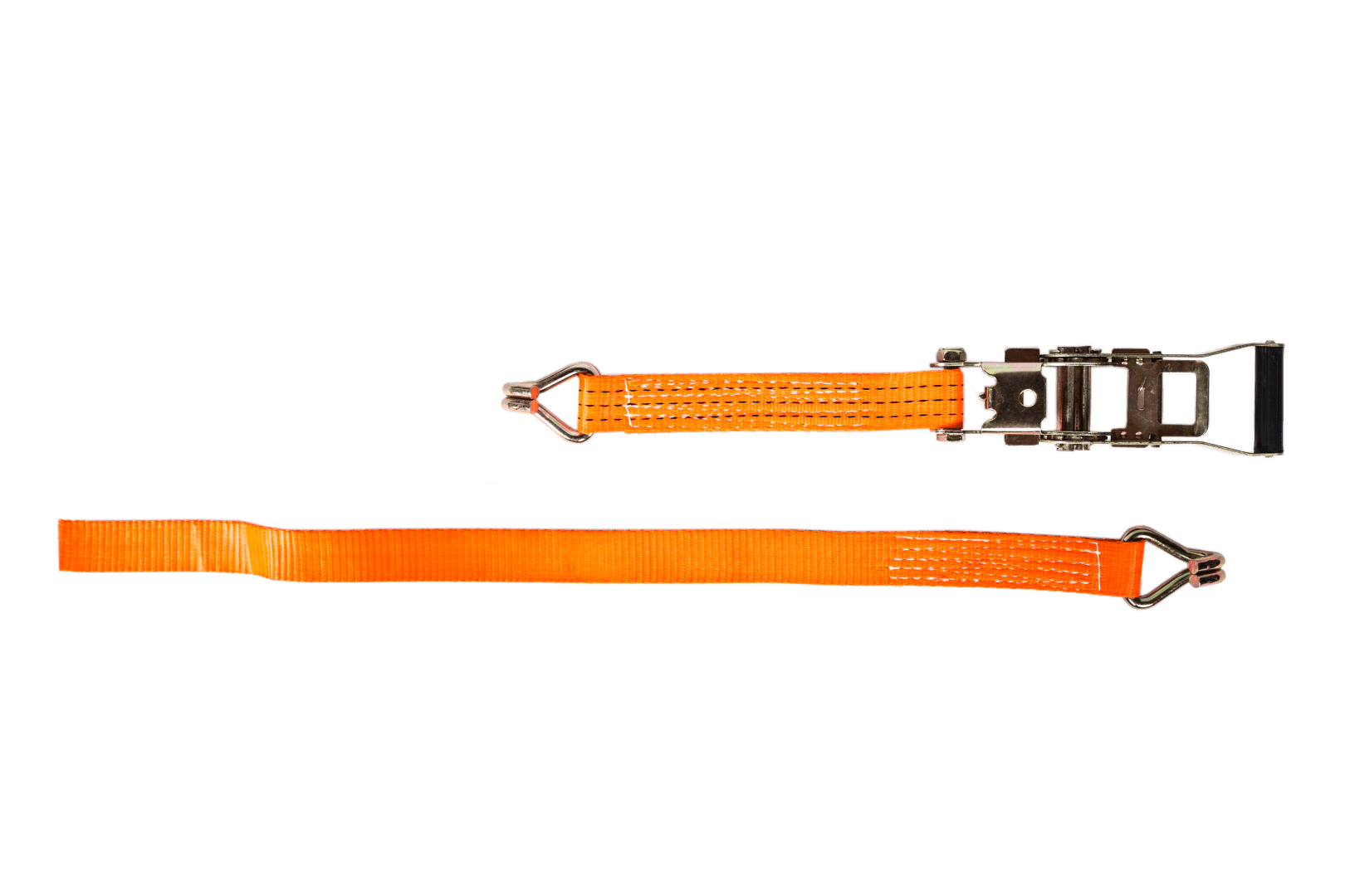 Pasy transportowe z napinaczem dwuczęściowe – są to najpopularniejsze pasy na rynku. Występują w czterech szerokościach – 25, 35, 50 i 75 mm. Stosowane są praktycznie przy każdym rodzaju ładunku. Wystarczy, że posiadają dwa punkty zaczepienia dla haków. Modele te stosowane są min. do zabezpieczenia drobnych ładunków, znajdujących się na przyczepce, mocowania okien i elementów drewnianych w branży stolarskiej, a także do spinania palet na tirze i ciężkich maszyn na lawetach.